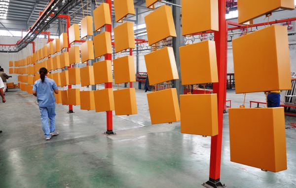 德國(guó)進(jìn)口的全長(zhǎng)250米的全自動(dòng)噴涂生產(chǎn)線(xiàn),以及木紋轉(zhuǎn)印車(chē)間。